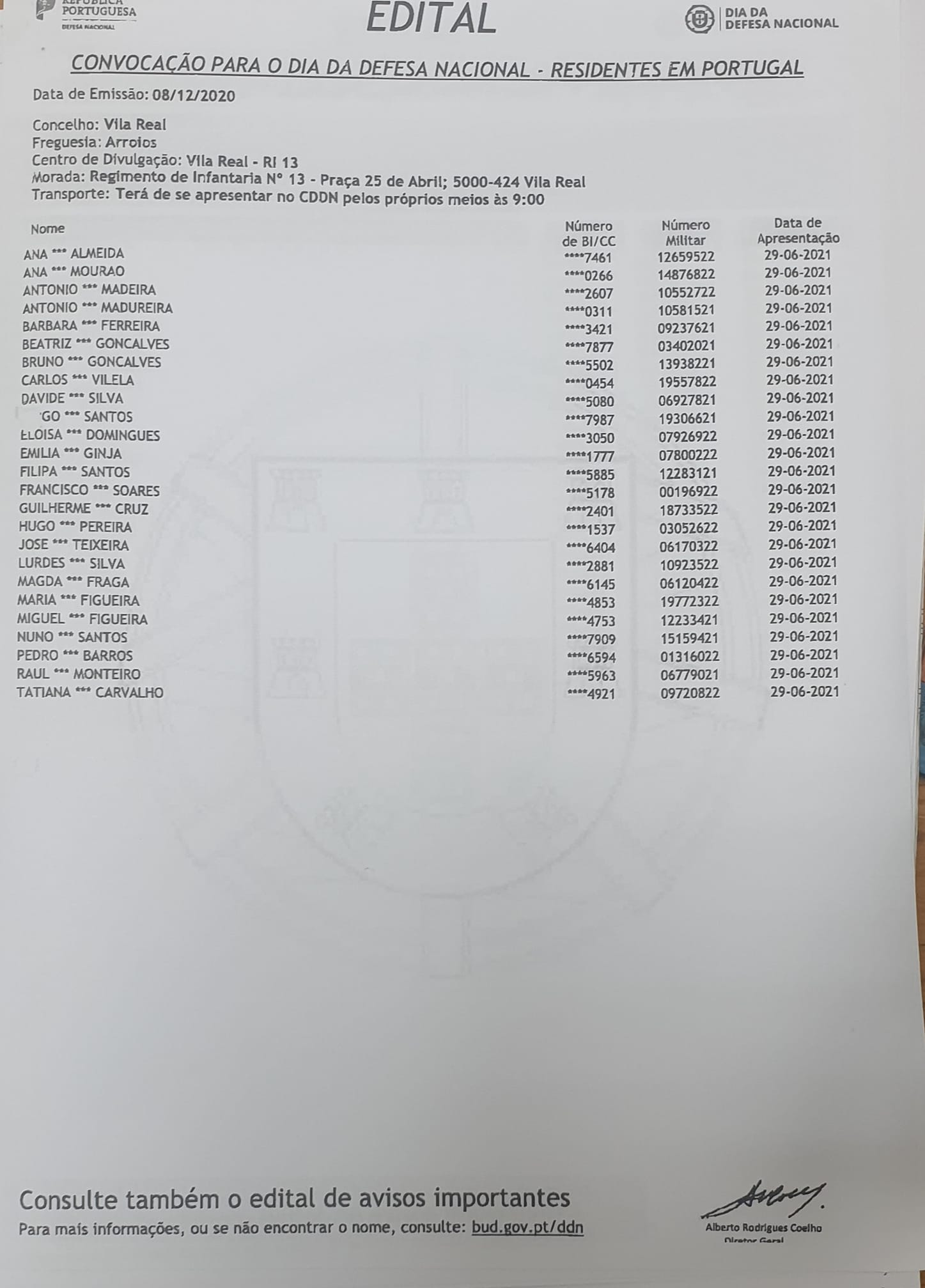 A comparência ao Dia da Defesa Nacional, ocorre nas datas para as quais os jovens de ambos os sexos, são notificados através destes editais de convocação, publicados no concelho e na freguesia de residência. Desta vez, no caso dos jovens residentes na freguesia de Arroios, a comparência está agendada para 29 de junho de 2021.